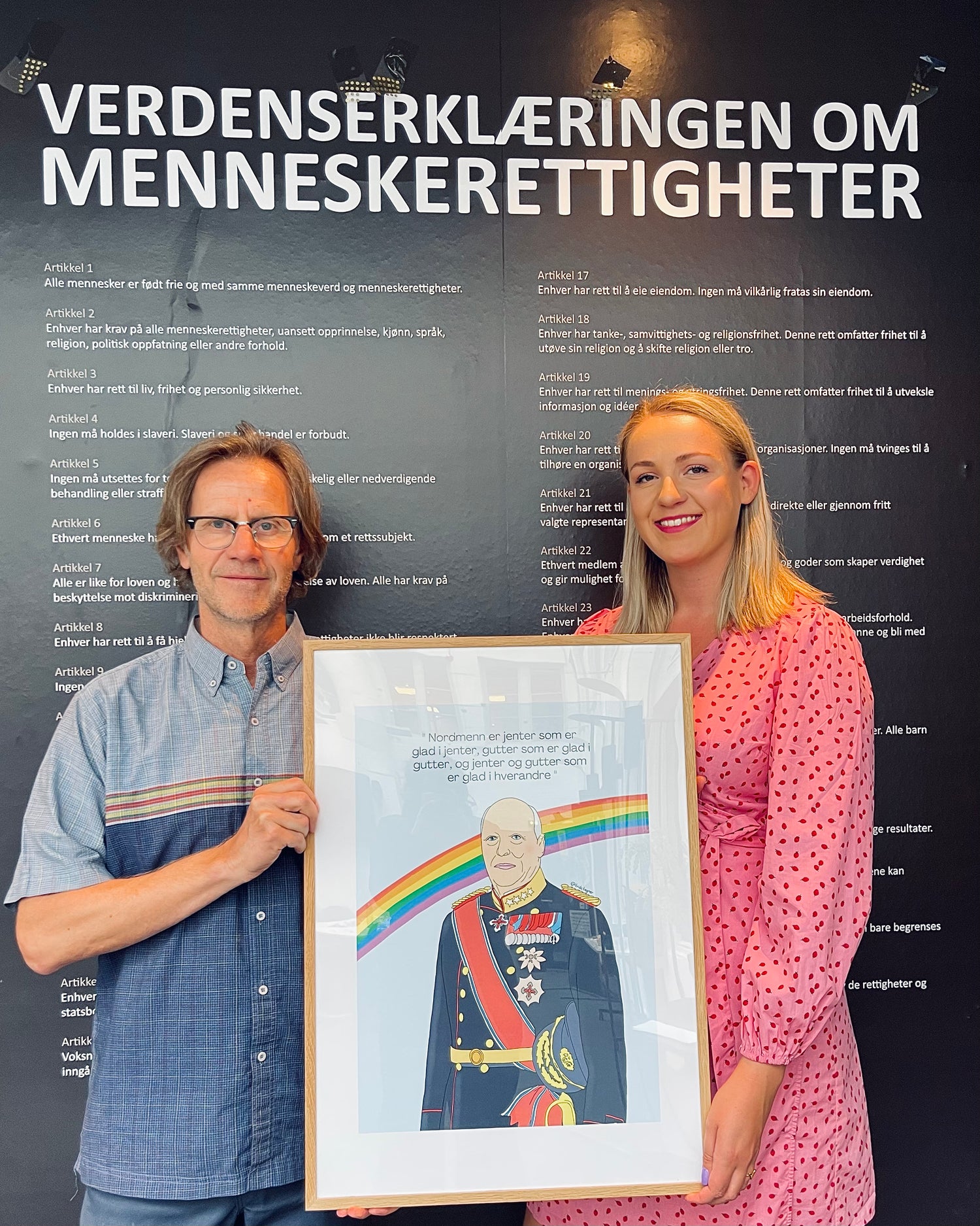 Da hun for første gang prøvde å selge plakater av Kong Harald på Instagram, ble det satt en pris på 500 kr, hvor 100 av dem skulle gå til Amnesty. Etter stor pågang, hvor hun til slutt måtte stoppe salget fordi det ble for mye å håndtere, ble det donert 30.000 kr til Amnestys arbeid.